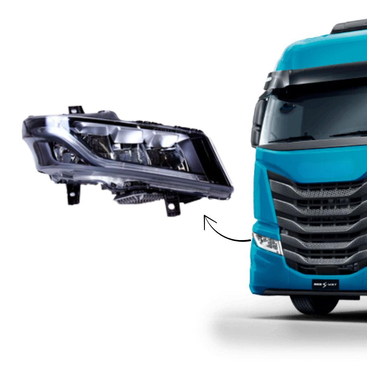 O farol principal Nino é compatível com caminhões Iveco S-Way 480 e 540 a partir de 2022, lado esquerdo, motorista. Com tecnologia Full LED, oferece luz de posição, luz média, luz de circulação diurna (DRL) e luz intermitente em um único conjunto. Todos os LEDs já vêm instalados, eliminando a necessidade de lâmpadas adicionais e garantindo mais praticidade e segurança.