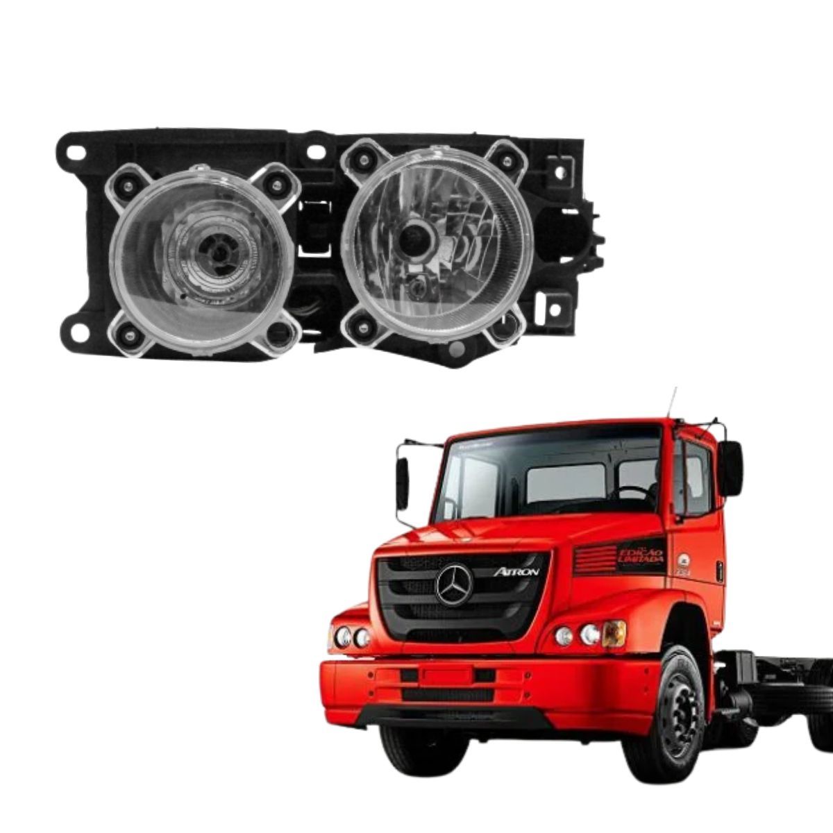 O farol Orgus para Mercedes Atron após 2013 lado direito equipado com lâmpadas H7H1 oferece iluminação potente e clara garantindo maior visibilidade e segurança ao dirigir.