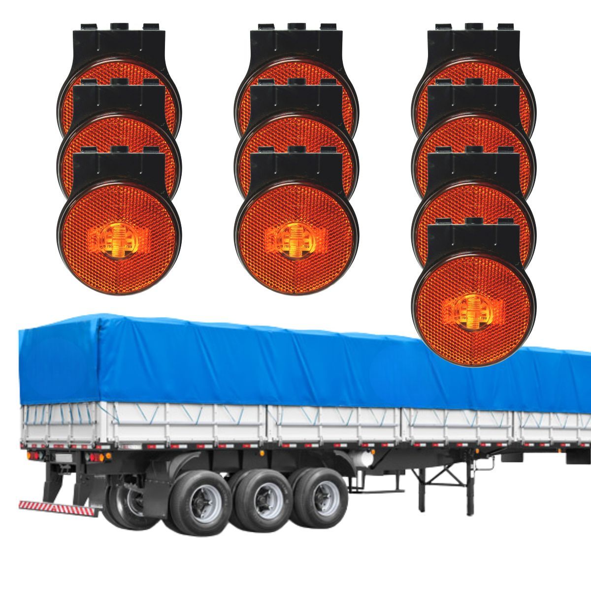 KIT 10 UNIDADES DE LANTERNA LATERAL 65MM RANDON BIVOLT C/ SUP AM EDN