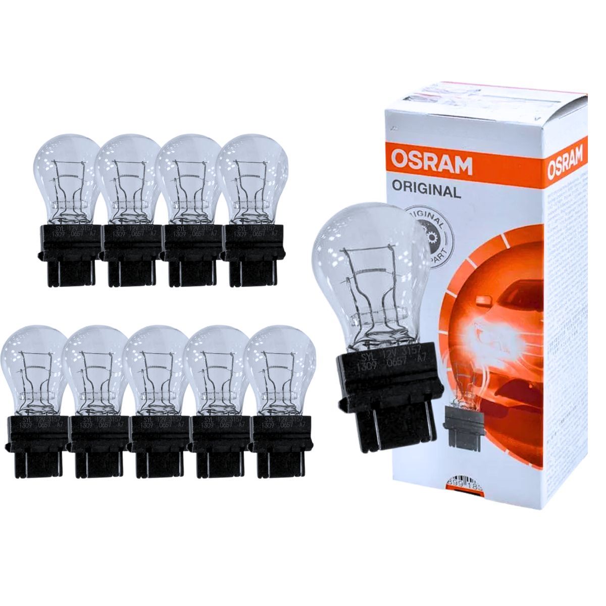 Lâmpada S8 12V 27/7W (3157) Base W2.5x16Q – Osram – Embalagem com 10 Unidades – Cód. 3157