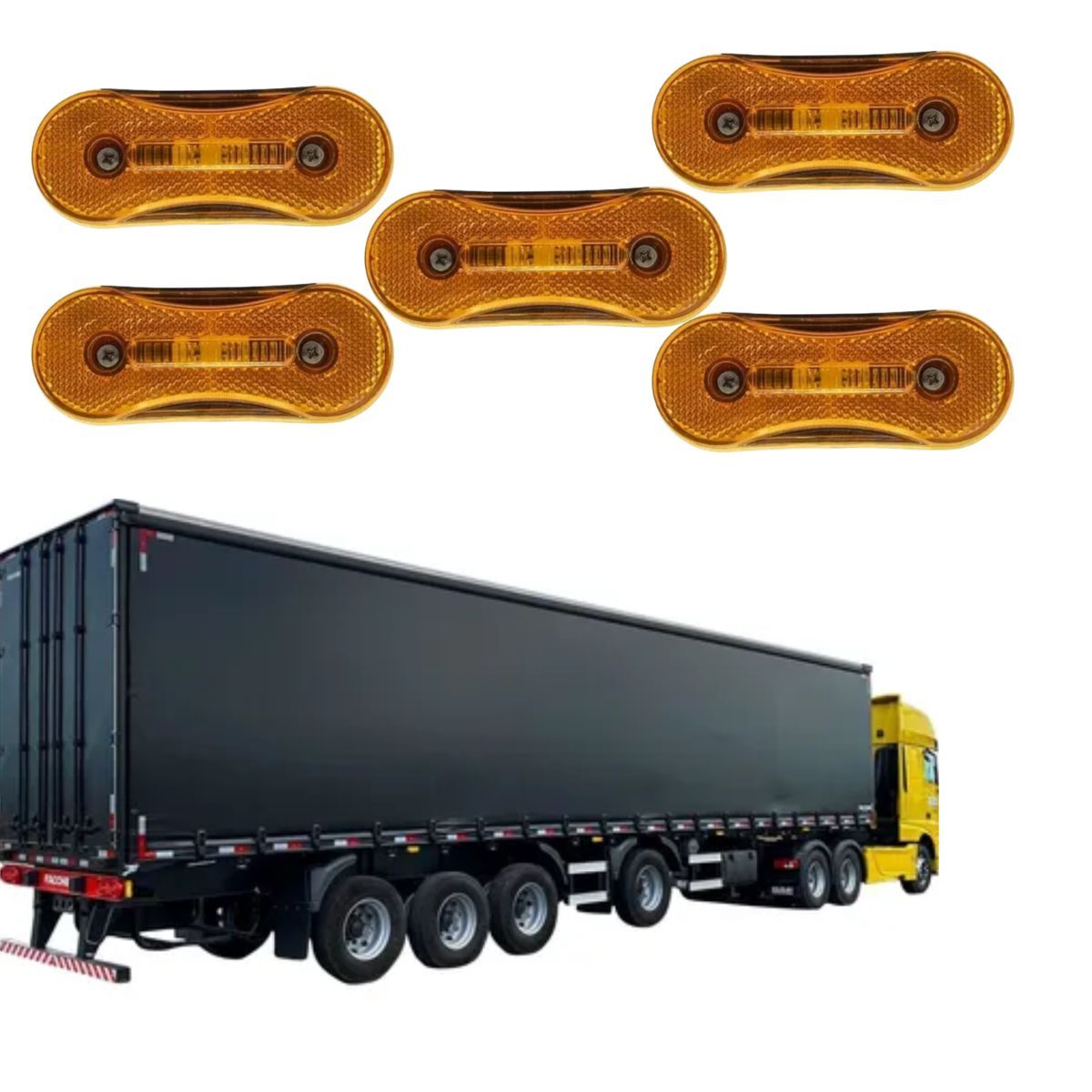 O KIT ACOMPANHA 5 UNIDADES DE LANTERNA LATERAL SIDELIGHT AMARELA 24V.