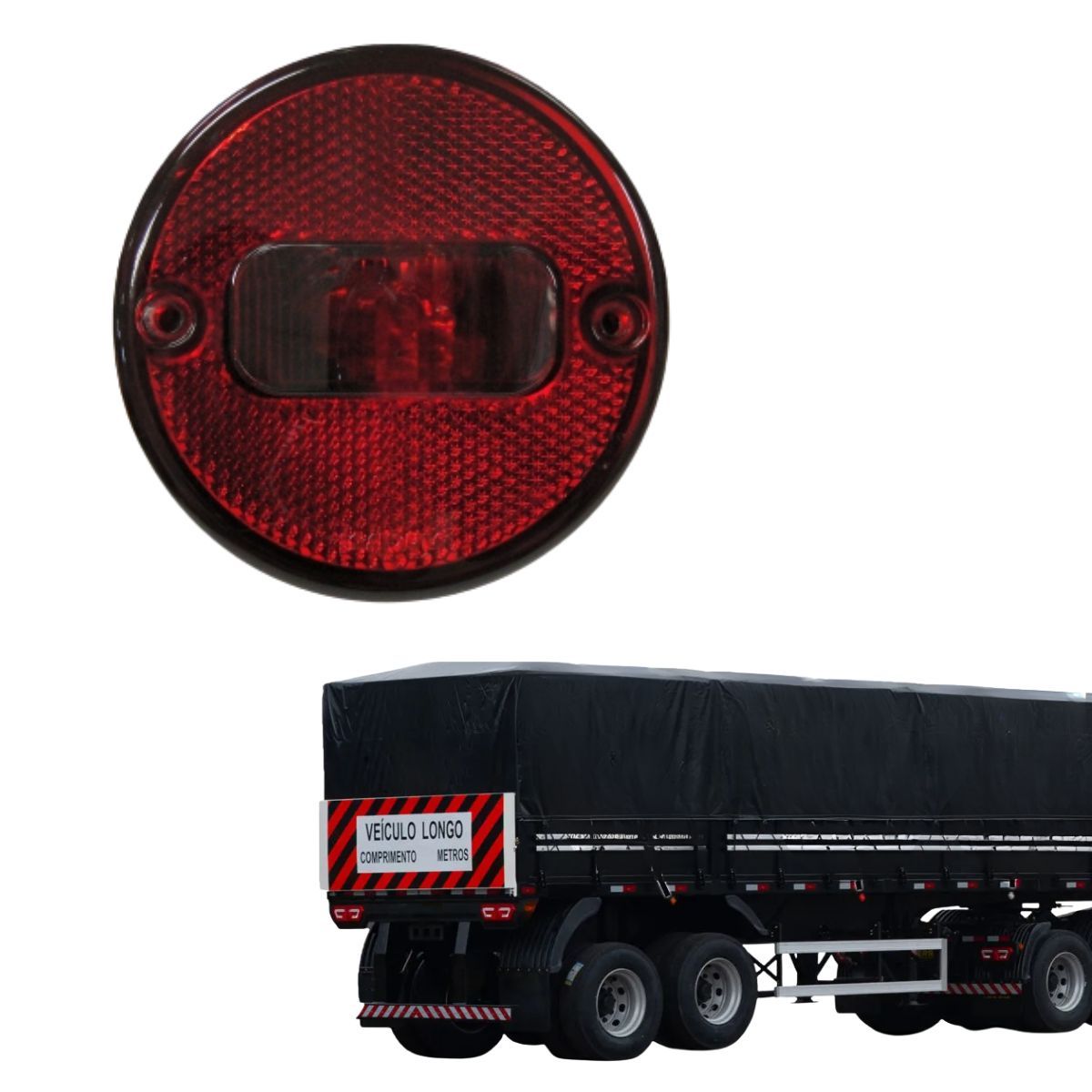 Lanterna lateral para veículos e implementos que utilizam lanterna redonda de 88mm com lâmpada modelo 67 5W, aplicada em carrocerias, reboques, semirreboques e implementos da marca Guerra e similares, conforme padrão original