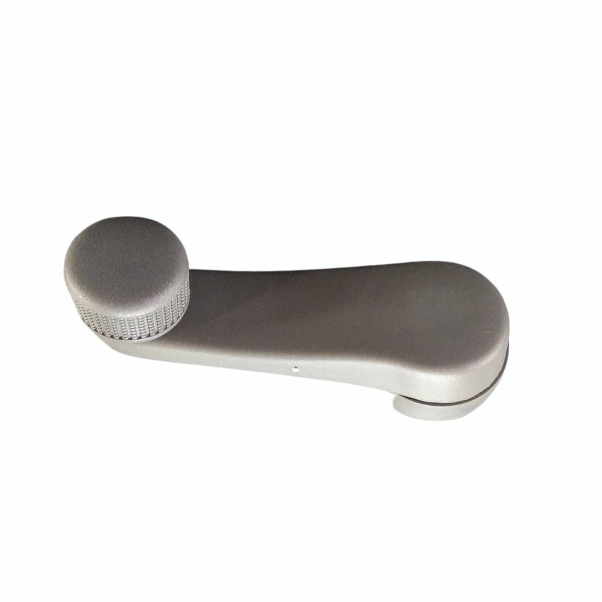 Manivela de vidro cinza para portas dianteiras, compatível com Volkswagen Constellation, Mercedes-Benz Accelo e Sprinter. Também aplicável nas linhas VW Gol, Parati, Saveiro (G3/G4/G5), Fox (a partir de 2003) e Polo (a partir de 2002). Produzida em plástico resistente com encaixe preciso e acabamento discreto, ideal para reposição original.
