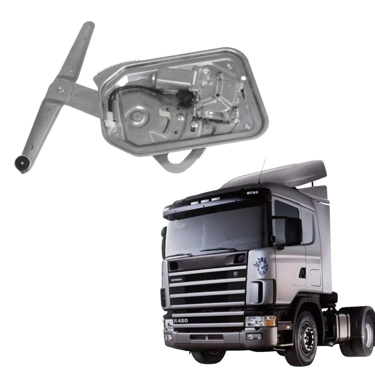 A máquina de vidro elétrica com motor é responsável pelo acionamento de subida e descida dos vidros da porta do veículo. Indicada para caminhões Scania Série 4, oferece encaixe perfeito e desempenho confiável, ideal para substituição da peça original.