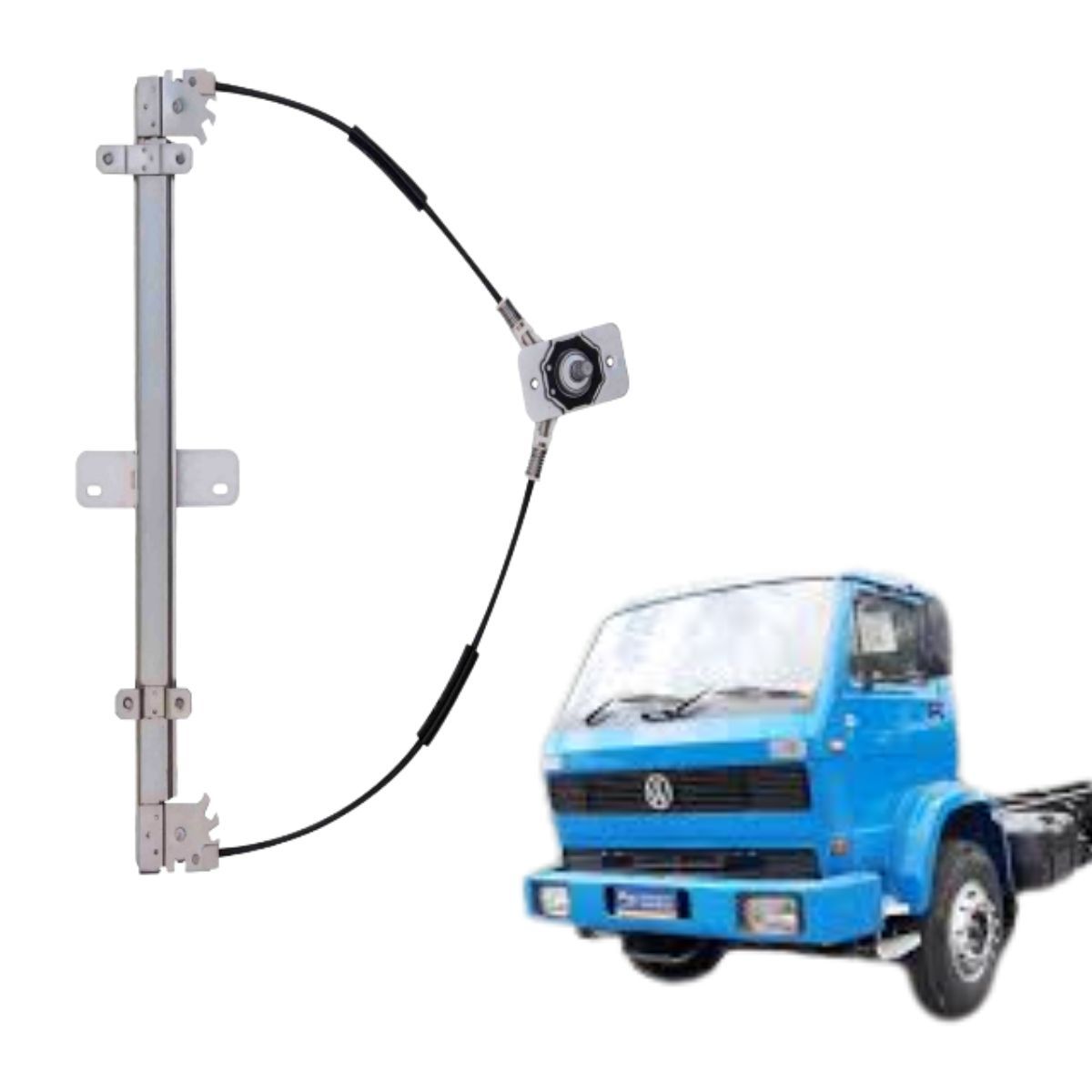 A máquina de vidro manual é indicada para reposição nos caminhões Volks Worker, Titan e Tractor fabricados entre 1990 e 1996, proporcionando operação suave e confiável dos vidros da porta dianteira. Ideal para manter o funcionamento original com durabilidade e encaixe preciso.