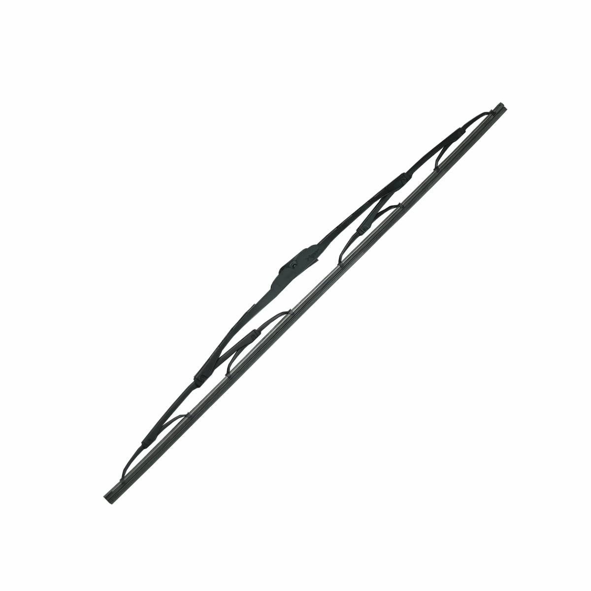 Palheta limpadora para-brisa 28 polegadas (700mm) marca Dyna indicada para caminhões Mercedes-Benz Actros fabricados a partir de 2010 Fabricada em aço carbono pré-zincado com vértebras em aço inoxidável e lâmina de borracha natural moldada oferece limpeza silenciosa e duradoura Conexão tipo gancho (G) para fácil instalação