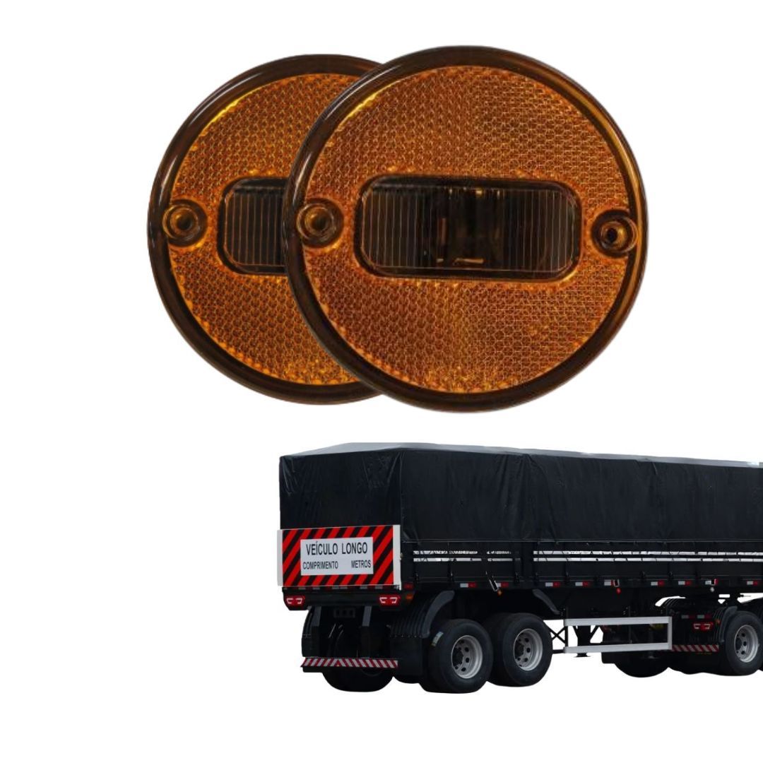 Lanterna lateral para veículos e implementos que utilizam lanterna redonda de 88mm com lâmpada modelo 67 5W, aplicada em carrocerias, reboques, semirreboques e implementos da marca Guerra e similares, conforme padrão original